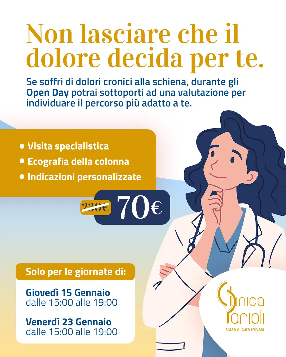 Al termine, il medico ti spiegherà l’origine del dolore e i passi più appropriati per migliorare la tua situazione.Solo se strettamente necessario, potrà consigliarti approfondimenti (altri esami diagnostici come la risonanza magnetica) o un percorso terapeutico mirato come l’ozonoterapia.